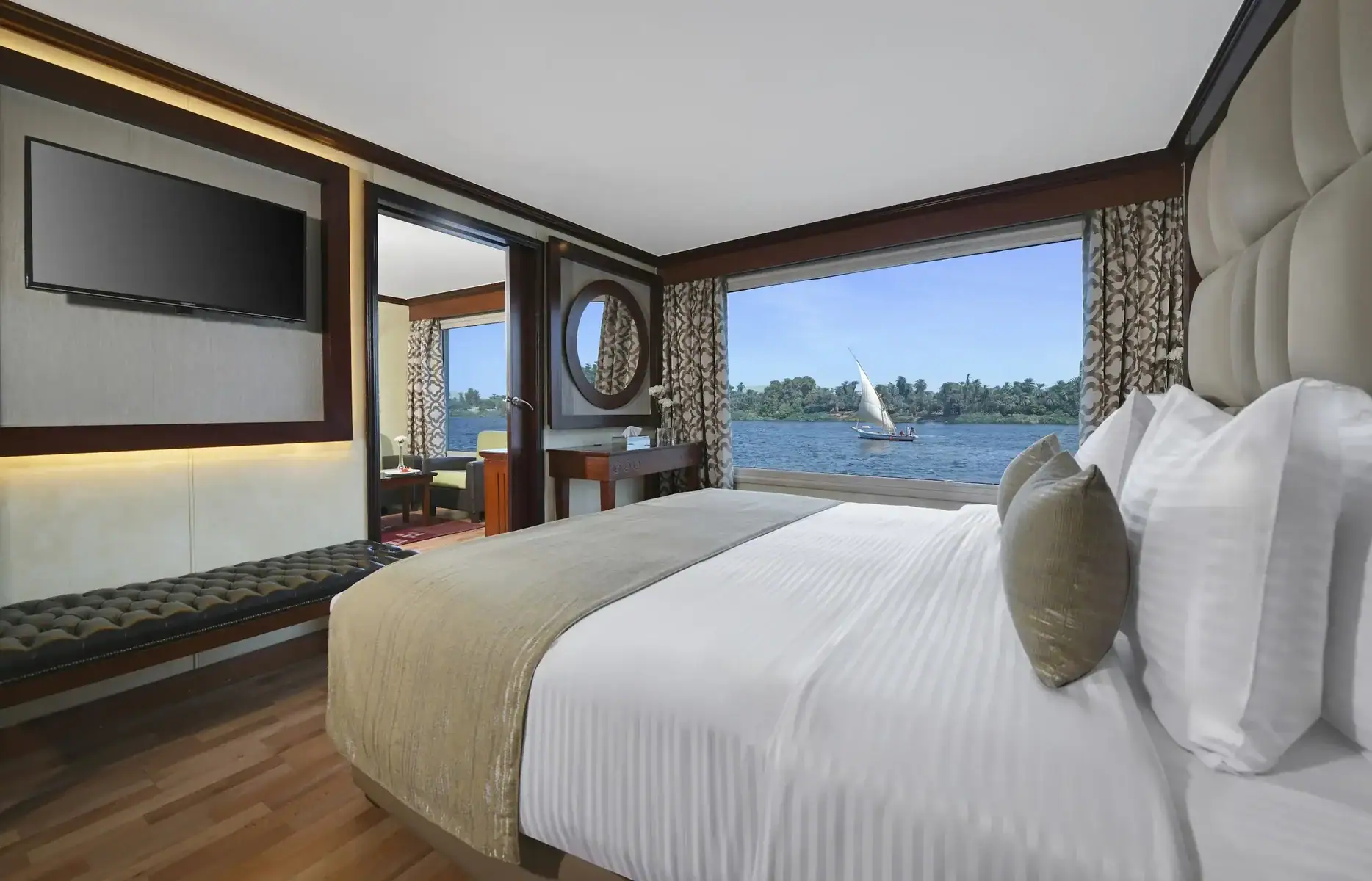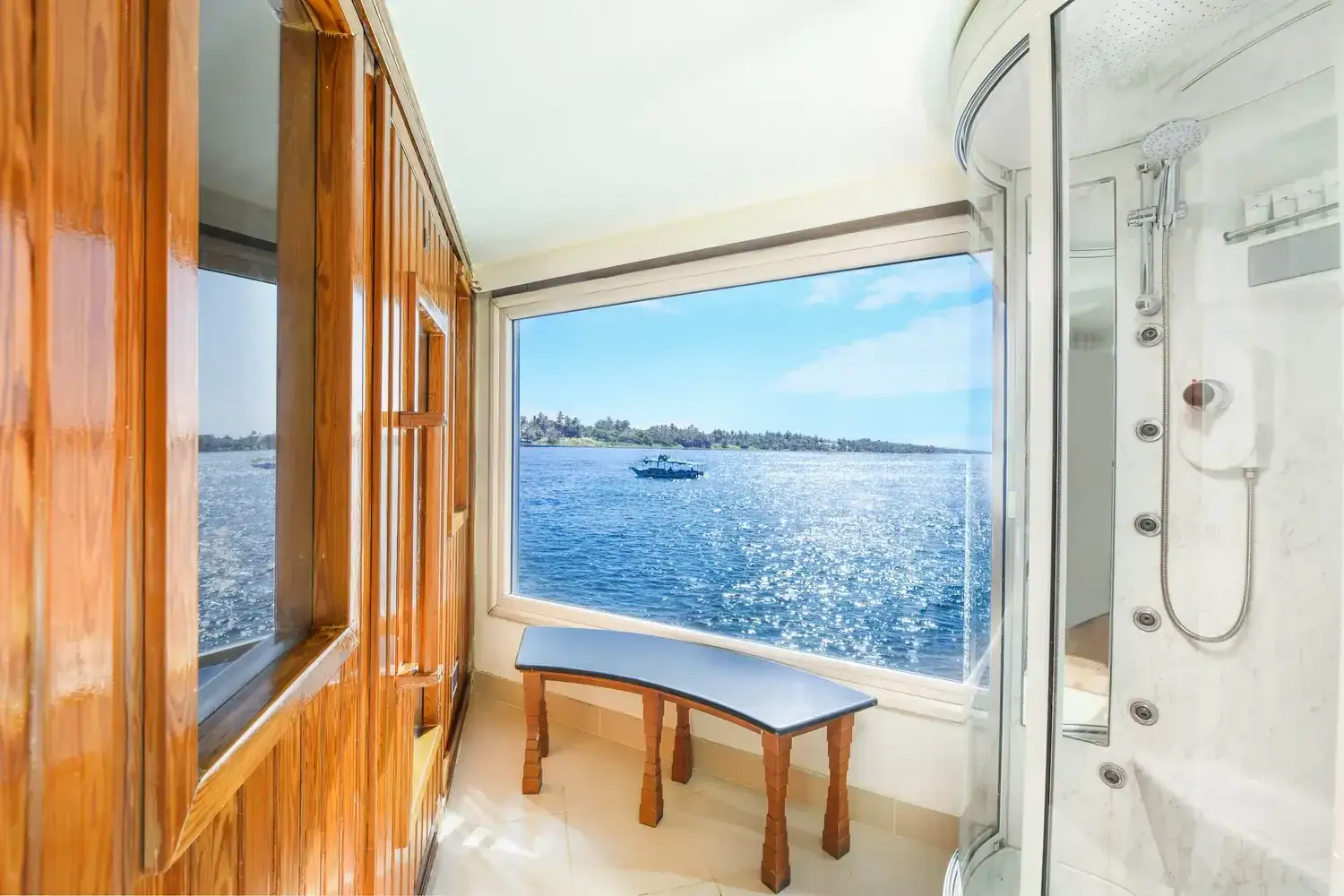 All cabins include large panoramic windows, offering continuous Nile views and good natural light throughout the journey.