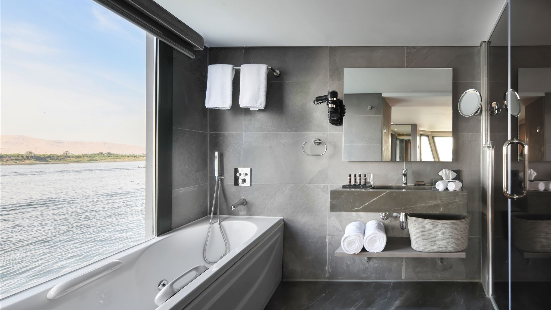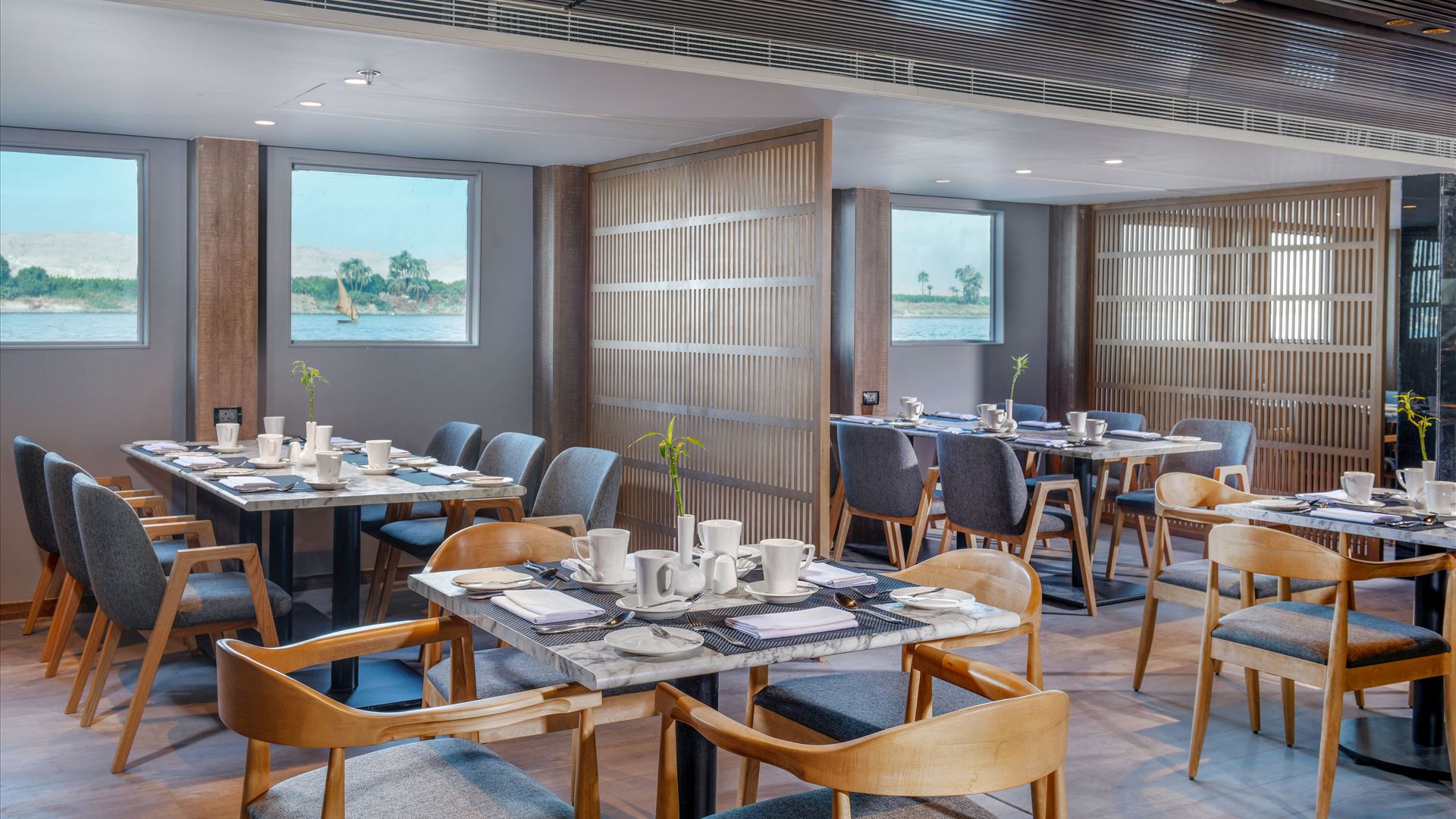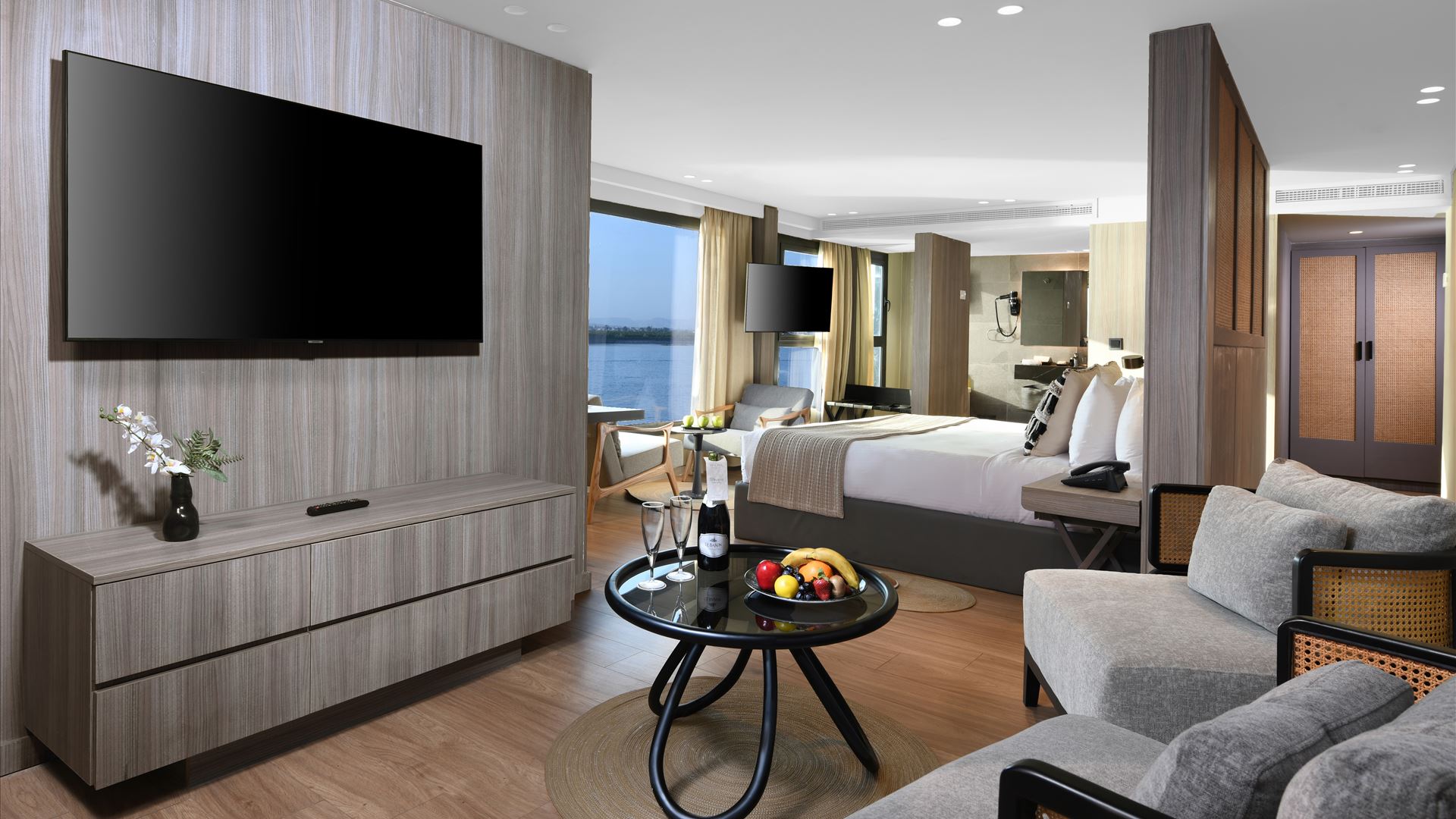 All rooms feature large panoramic windows that keep you connected to the Nile scenery at all times.