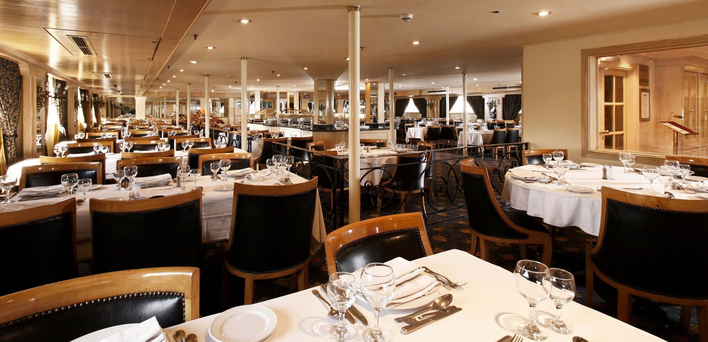 Cabins are designed in a classic cruise style with warm tones and practical layouts. While not oversized, they are comfortable and well-equipped for a multi-day journey.