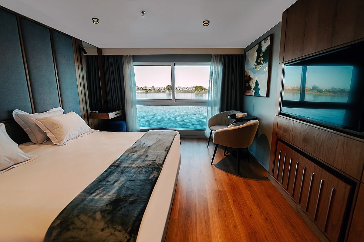 - Spacious cabins with Nile-view windows across all categories