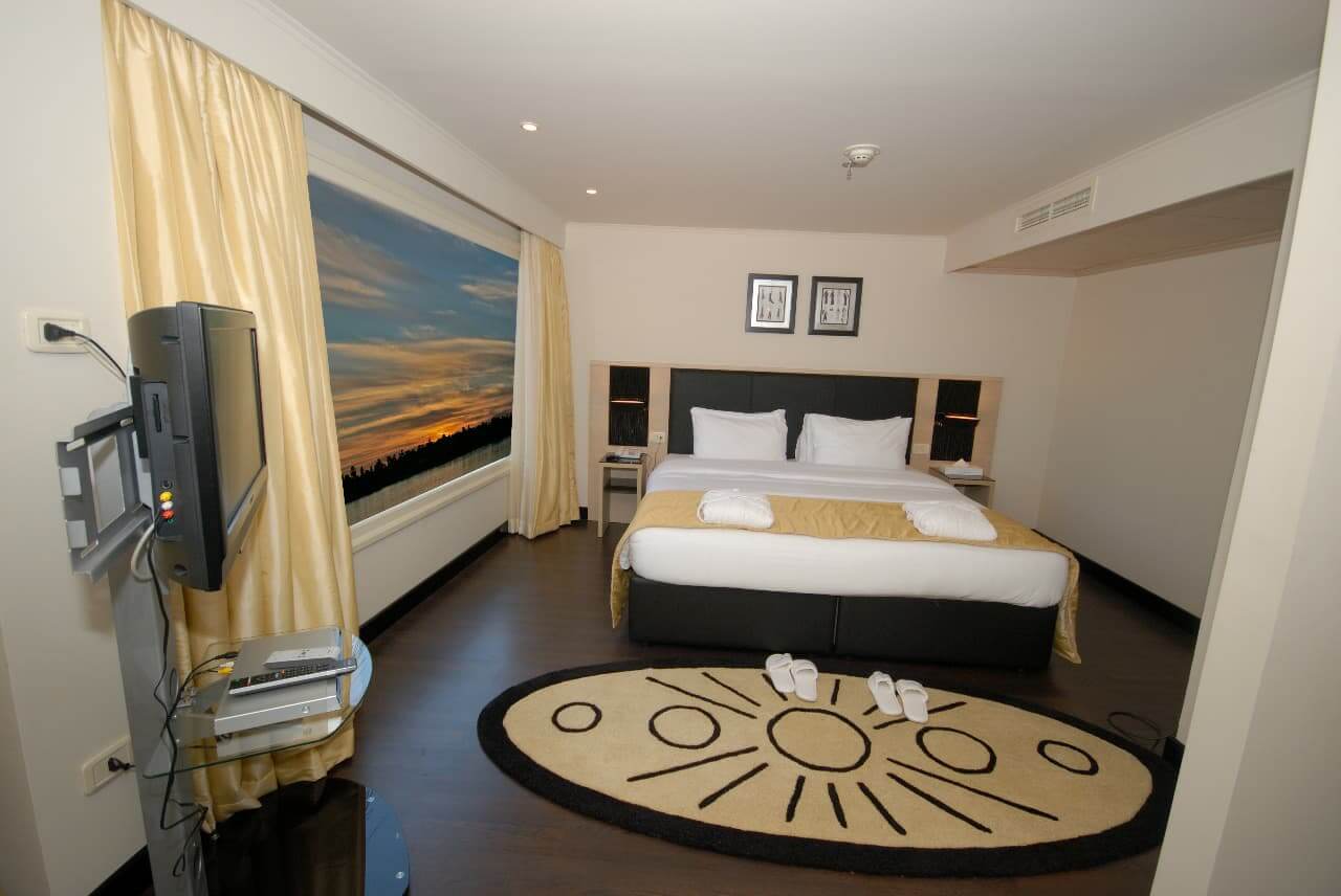 Large windows allow ample natural light and continuous Nile views, creating a pleasant sense of openness even without balconies.