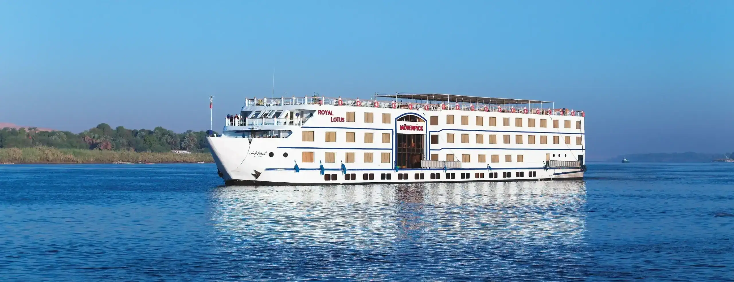 Sailing between Luxor and Aswan, the Mövenpick MS Royal Lotus is a well-established luxury Nile cruiser launched in 2005 and operated under the globally recognized Mövenpick Hotels & Resorts brand, part of Accor.