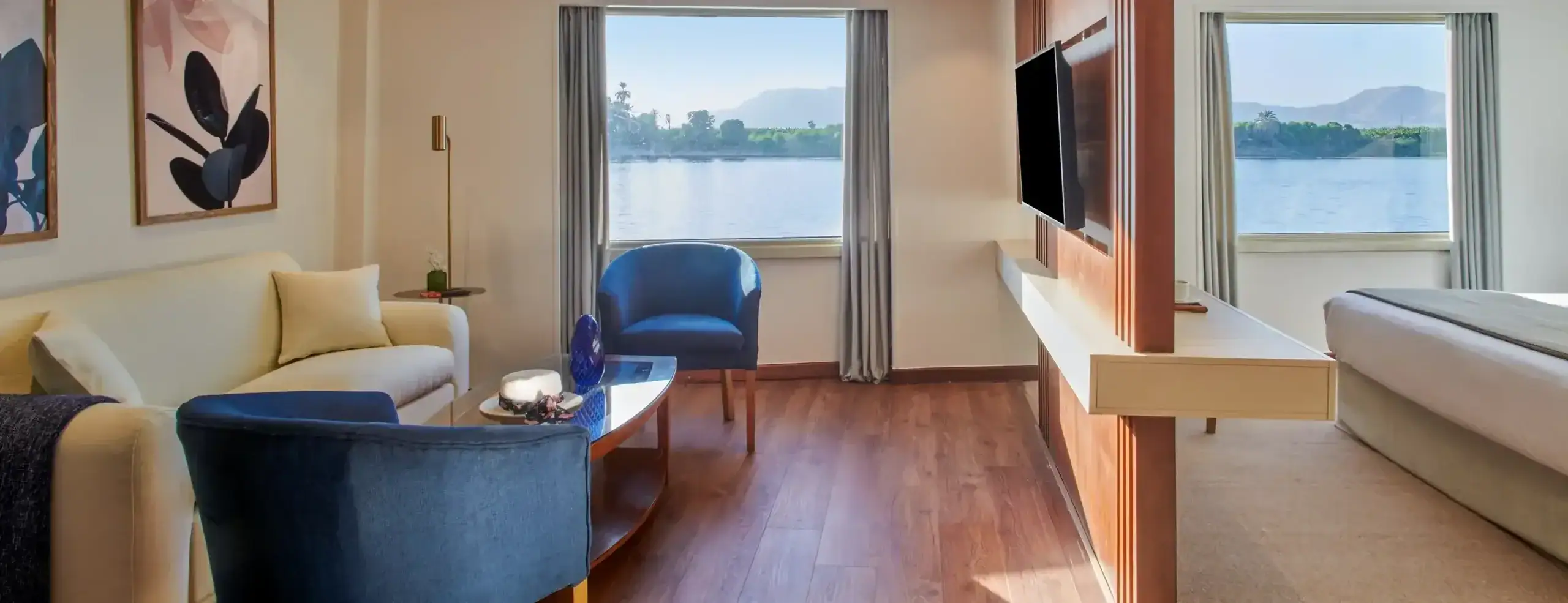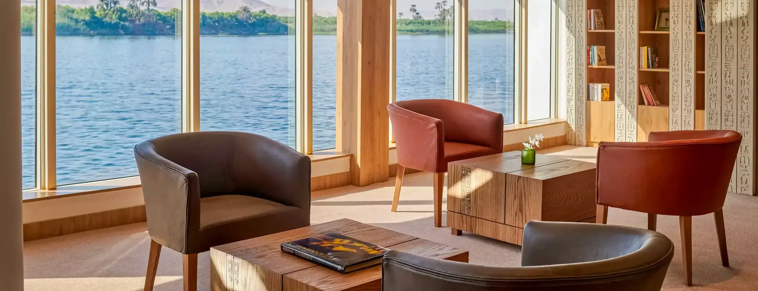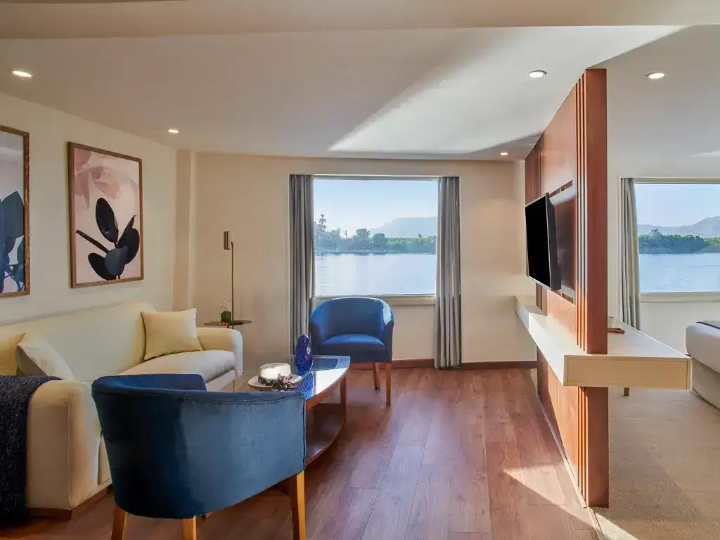 All cabins include large panoramic windows, ensuring uninterrupted views of the Nile throughout the journey.
