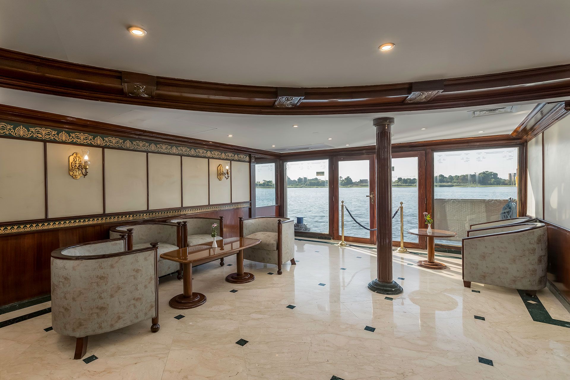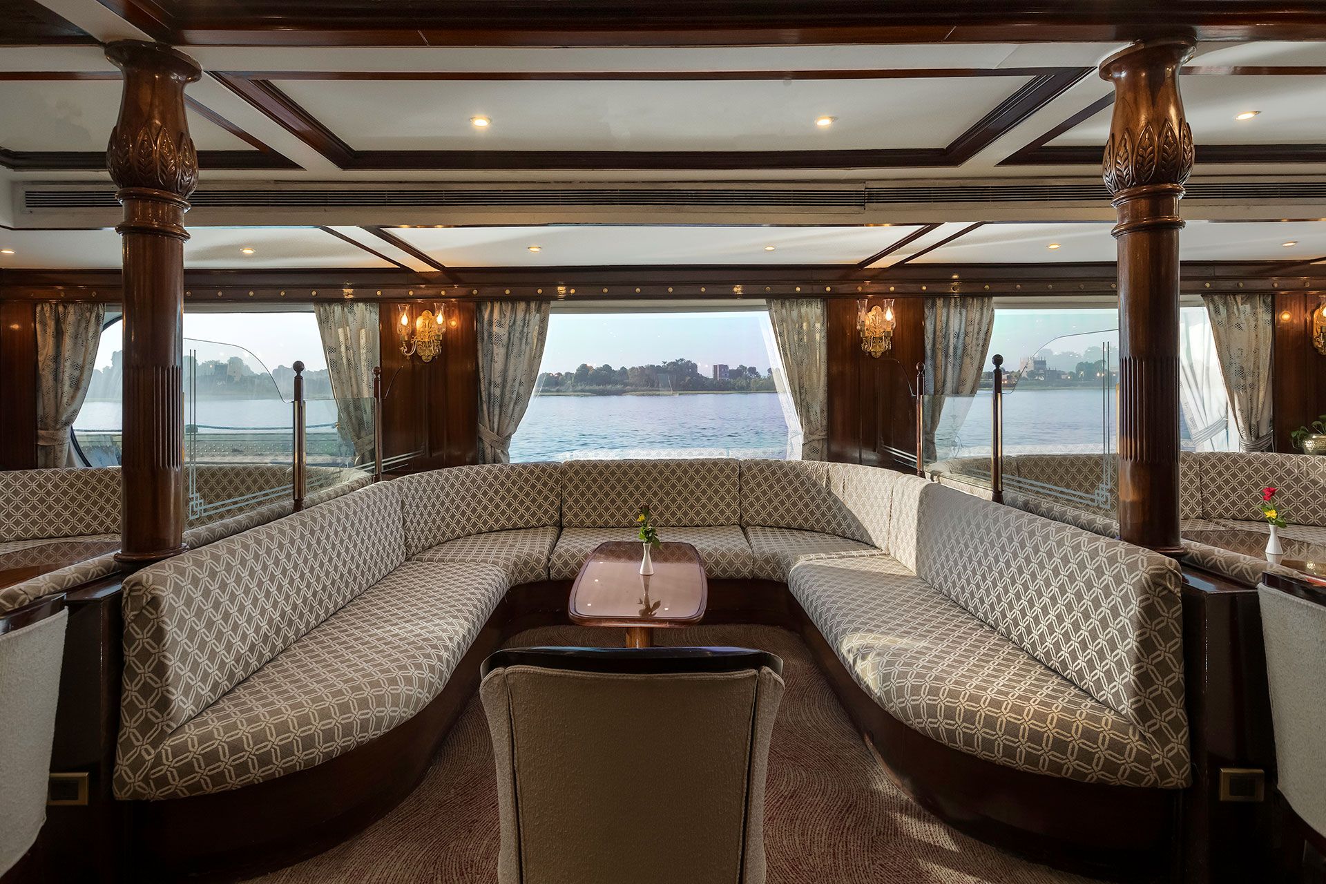 All cabins feature large panoramic windows, allowing natural light and uninterrupted Nile views throughout the journey.