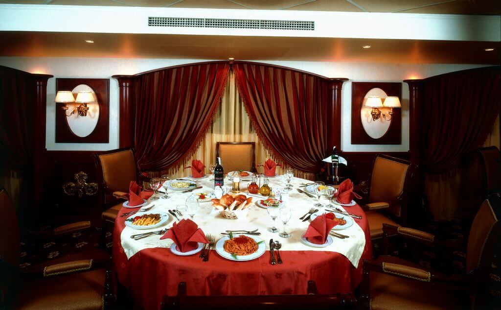 All meals are served in the main restaurant on a full-board basis (breakfast, lunch, afternoon tea, and dinner).