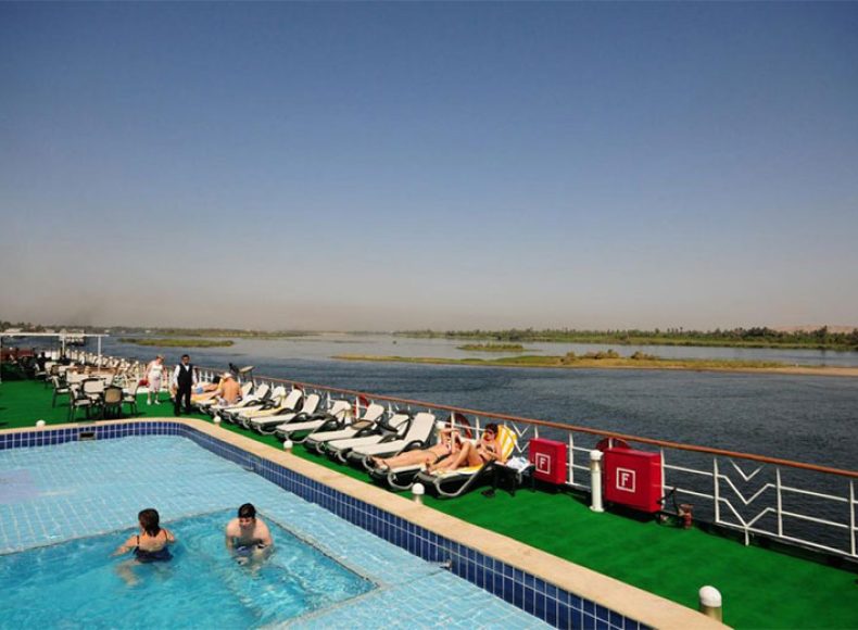 Sail the Nile in elegance aboard the Royal Ruby Nile Cruise, a 5-star vessel offering a refined and intimate cruising experience. From Luxor to Aswan, guests explore iconic temples, tombs, and monuments while enjoying the ship’s stylish accommodations, panoramic lounges, and sun deck with a swimming pool.