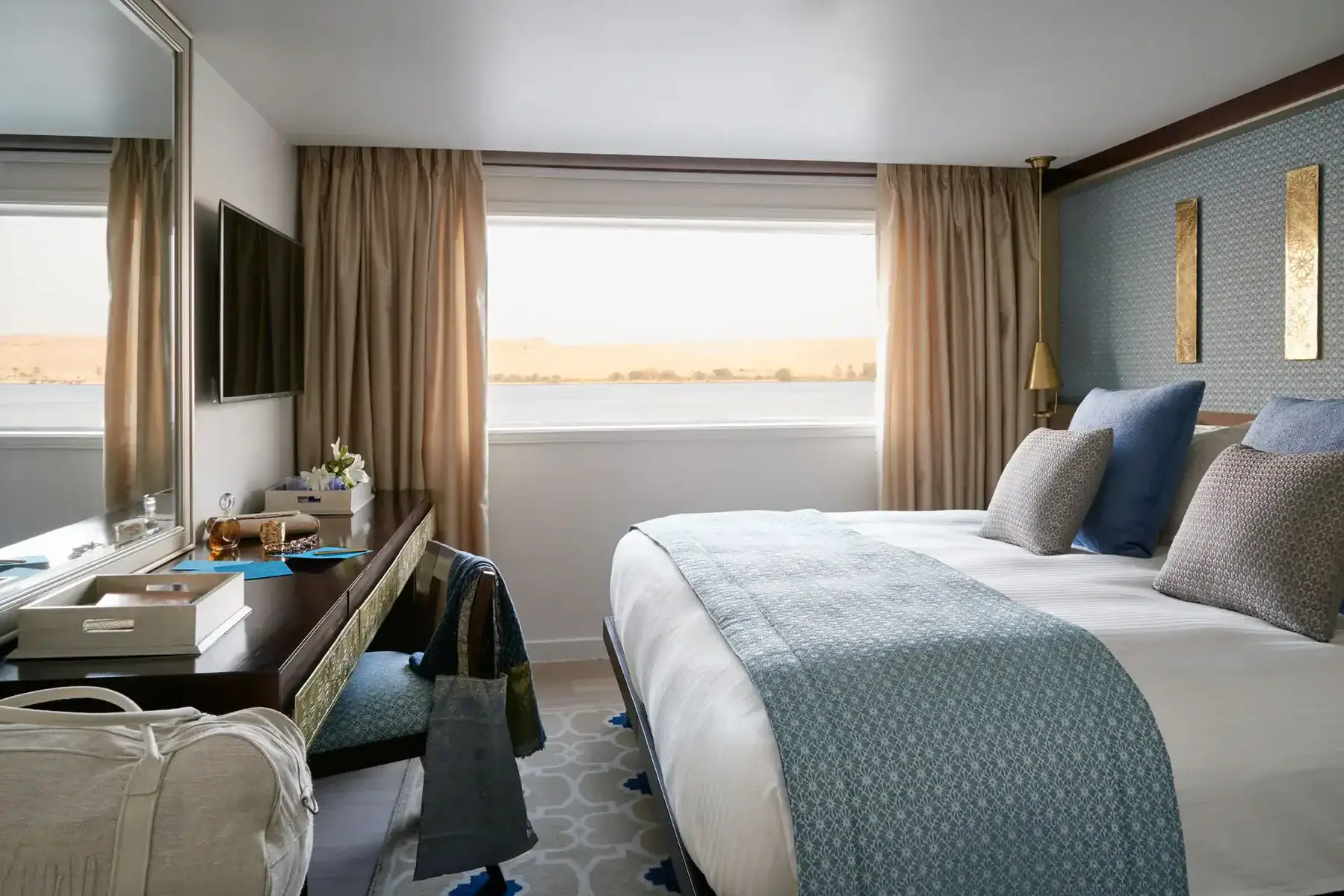All cabins feature Nile-facing windows, ensuring natural light and uninterrupted views throughout the journey.