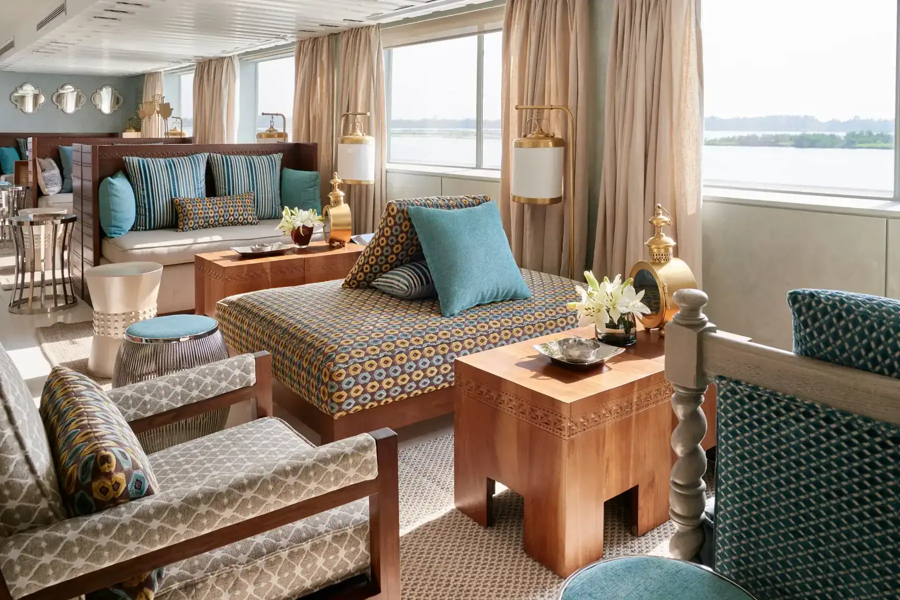 Sailing between Luxor and Aswan, the Sanctuary Nile Adventurer is a boutique luxury vessel offering an immersive journey through Egypt’s most iconic archaeological sites. Operated under the Sanctuary Retreats (Abercrombie & Kent) brand, the ship combines contemporary design with traditional Egyptian influences.