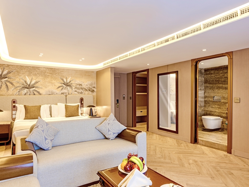 Royal Suite: King bed, expansive living space, premium layout