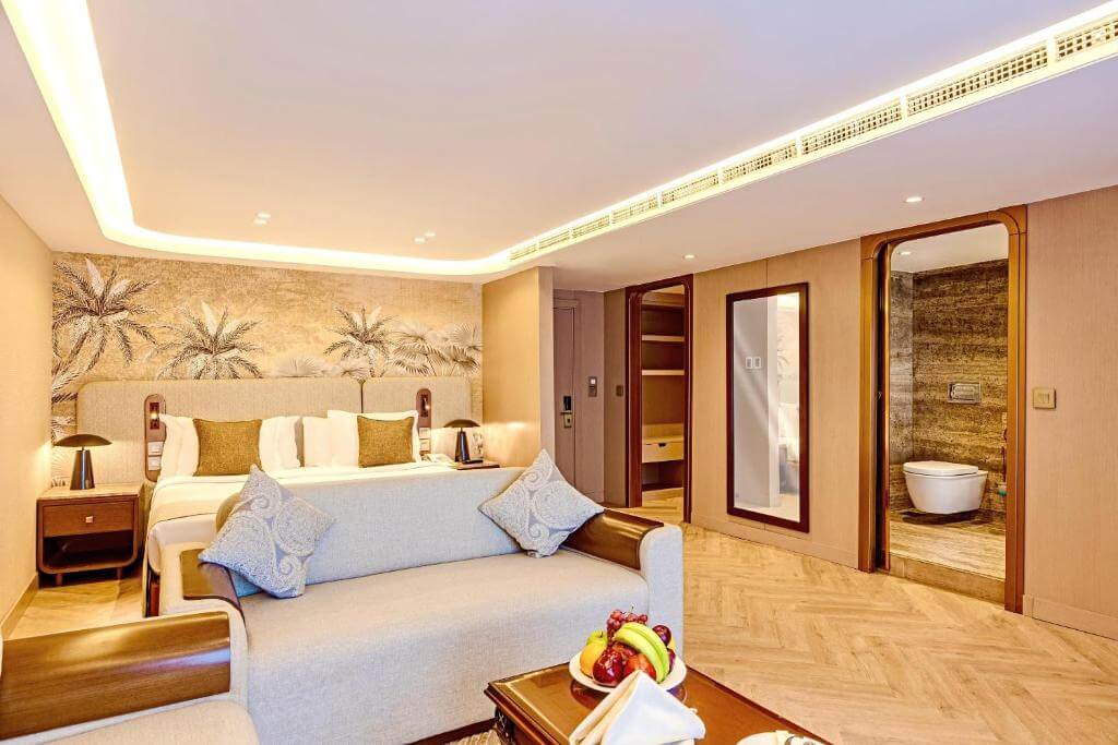 - Royal Suite: Expansive luxury with separate living space and enhanced features