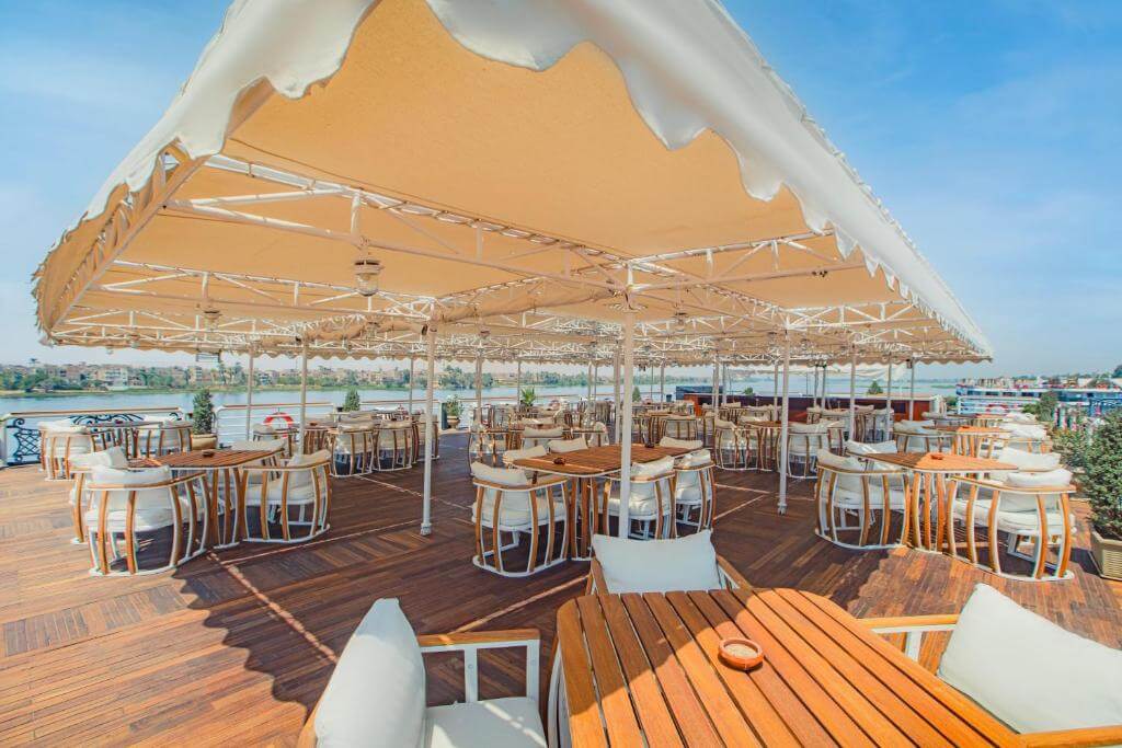 - Spacious cabins with panoramic Nile views