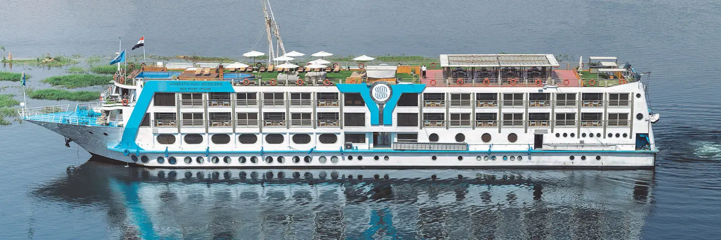 The Sonesta Sun Goddess is one of the most exclusive five-star deluxe Nile cruise ships. Launched in 2020, this elegant floating hotel sails between Luxor and Aswan, offering three-, four-, and seven-night itineraries. With only 30 all-suite accommodations, every guest enjoys exceptional space, privacy, and panoramic Nile views.