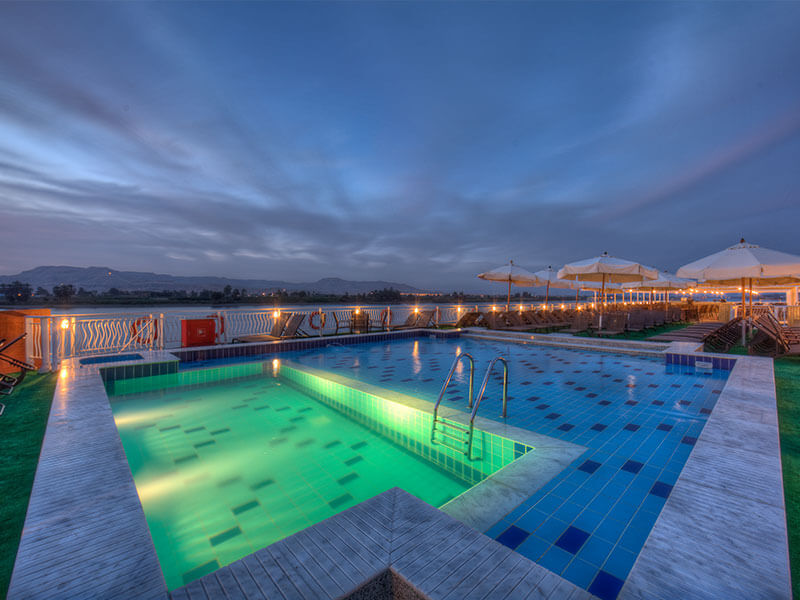 At approximately $329–$520 per night per person, the Steigenberger Legacy Nile Cruise offers a strong value-oriented luxury experience on the Nile. With full-board meals, guided Egyptologist-led tours, transfers, and all service charges included, the overall cost remains competitive compared to many 5-star Nile cruises that price excursions, transportation, or onboard services separately. While it does not deliver the intimate, boutique atmosphere of a Dahabiya, the Steigenberger Legacy compensates with larger cabins, extensive onboard facilities, and a structured sightseeing program, making it an excellent choice for travelers seeking comprehensive luxury and predictable pricing without sacrificing comfort or service quality.