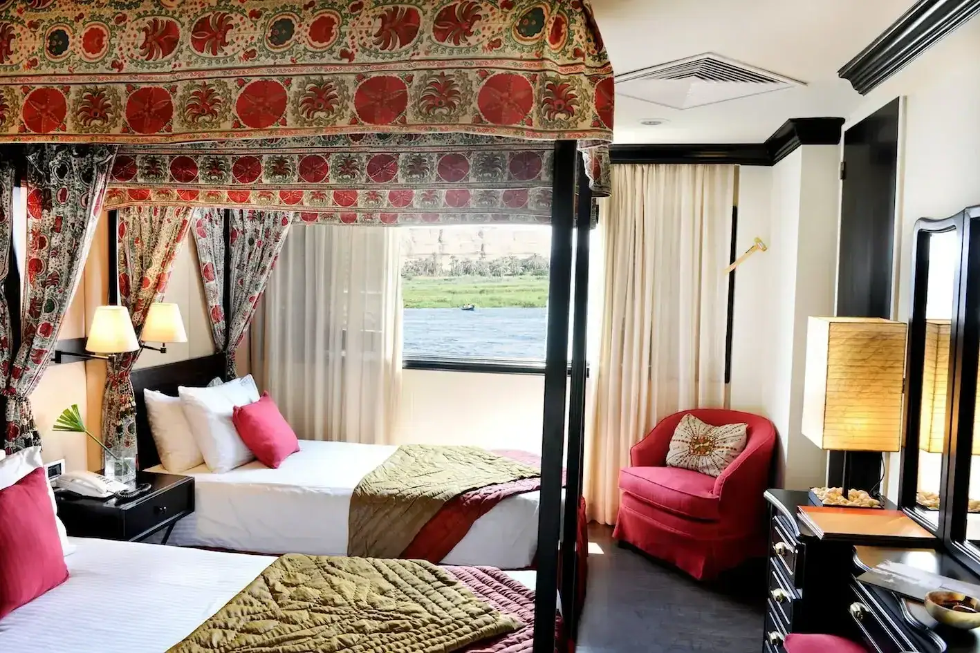 All cabins offer Nile views, while higher-category suites include private balconies for uninterrupted scenery.