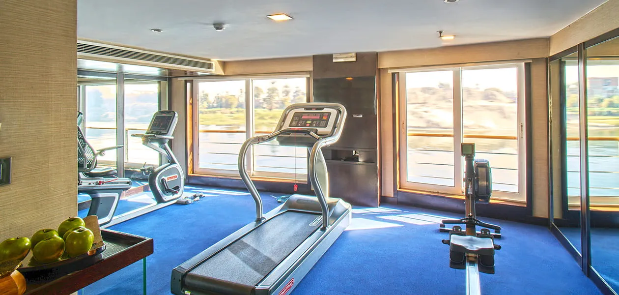 Air-conditioned gym with essential exercise machines, allowing you to stay active while overlooking the River Nile.