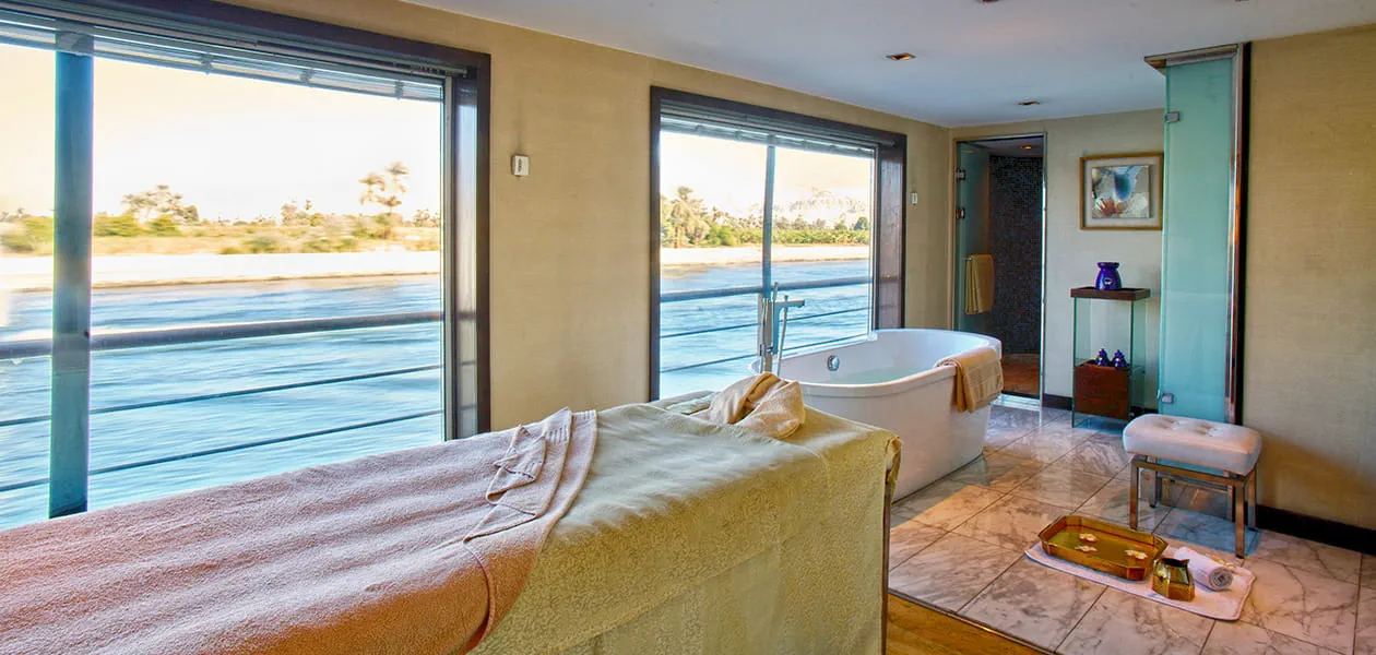 Private treatment rooms with Nile views, plus an onboard beauty salon for ladies and gentlemen. Enjoy personalized therapies including Thai, Balinese, Swedish, and signature Oberoi massages.