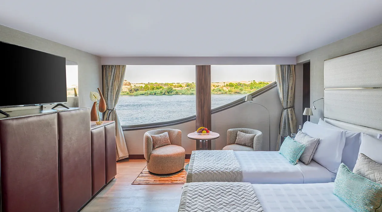 - Exceptionally spacious cabins and suites with Nile views