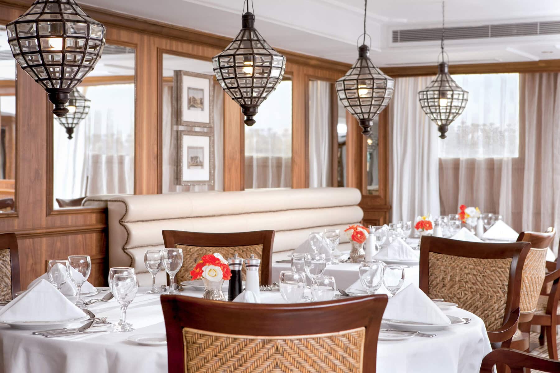 Launched in 2009, the MS Tosca Nile Cruise blends old-world sophistication with contemporary luxury. Its interior design—crafted by the same team behind the award-winning Red Carnation Hotel Collection—features warm wood paneling, original artwork, and a refined European aesthetic.
