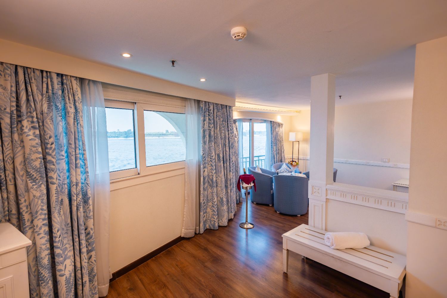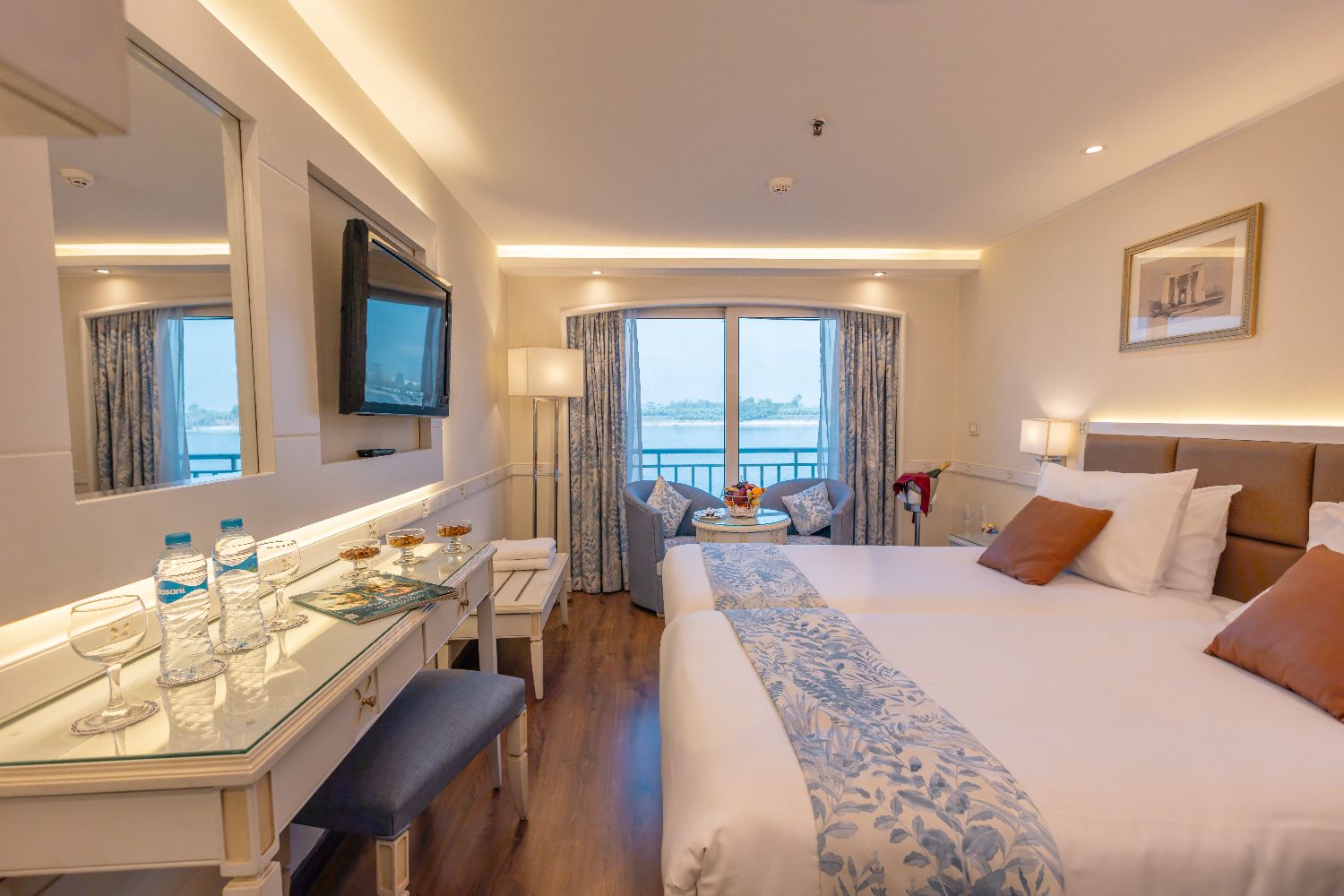 Large panoramic windows provide uninterrupted Nile views and ample natural light, enhancing the sense of space.